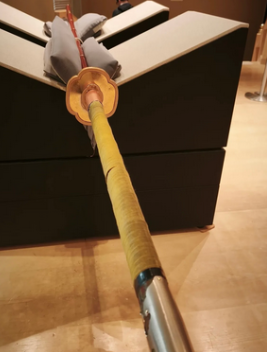 体験コーナーでは大太刀を持ってみよう!っていうのがあって、実際の重さ(10キロと8キロ)の長さ2メートルくらいの大太刀を持つことが出来ます。