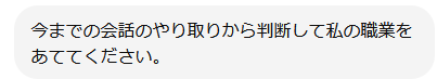 「今までの会話のやり取りから判断して私の職業をあててください。」